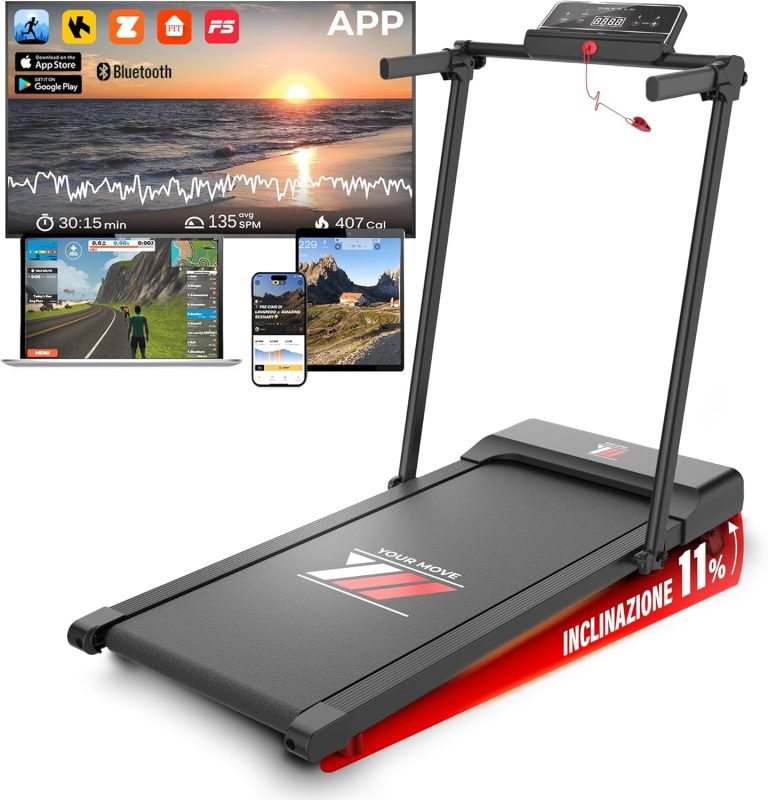 Scopri YM Tapis Roulant Salvaspazio Elettrico NEXT 1000 Your Move: allenati fino a 12 km/h con inclinazione e maxi superficie da 42 cm, pieghevole e robusto con assistenza italiana